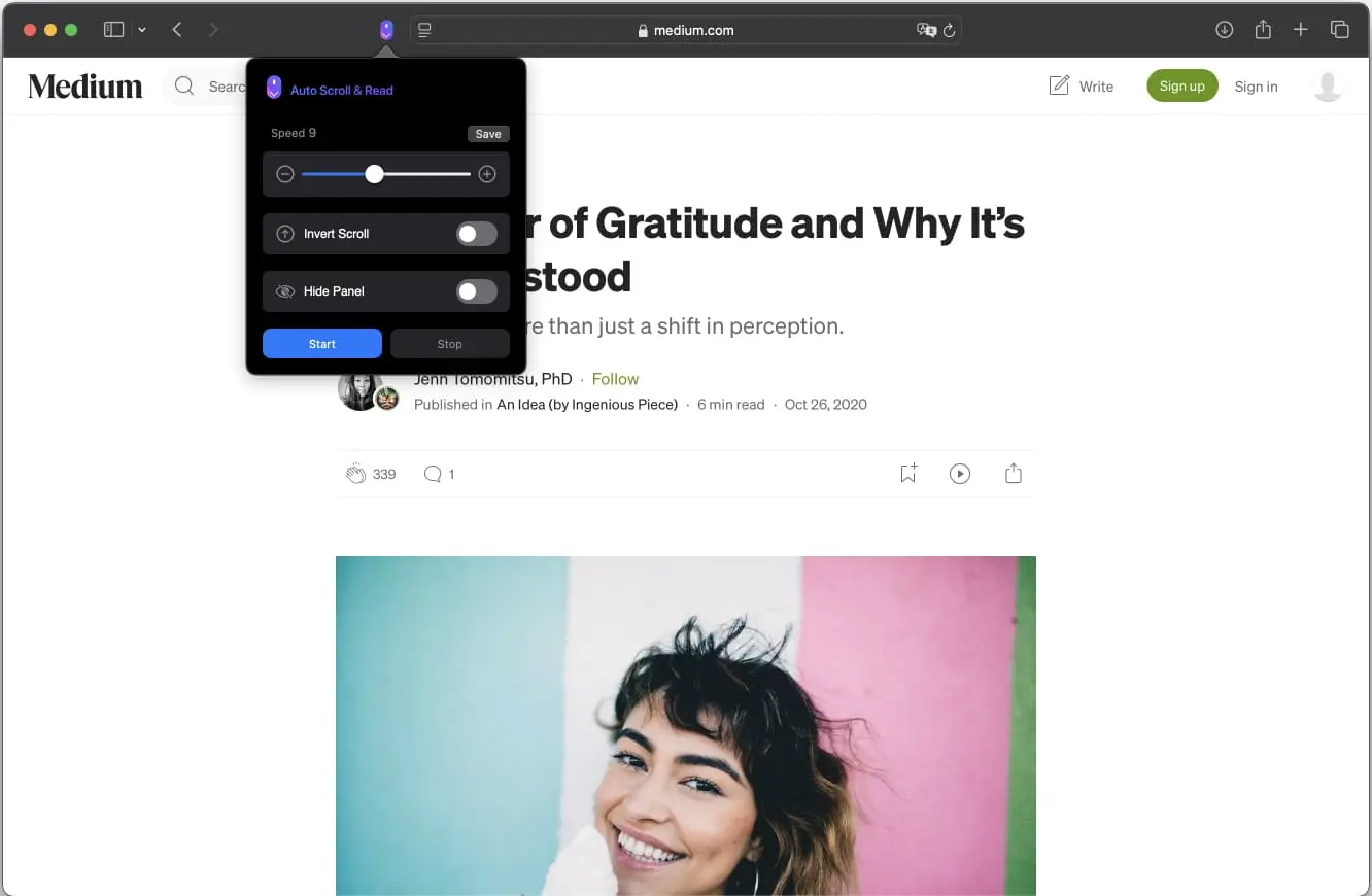 You can download Auto Scroll and Read from the App Store here: Auto Scroll and Read. From there, enable it as a Safari extension in Safari’s settings, choose your preferred scrolling speed, and start using it as your everyday web scroller.